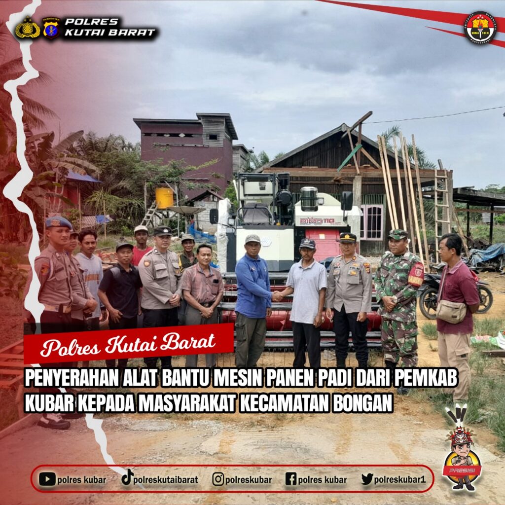 Bongan – Pemerintah Kabupaten Kutai Barat (Pemkab Kubar) menyerahkan alat bantu mesin panen padi kepada masyarakat Kecamatan Bongan dalam sebuah acara yang berlangsung di rumah Sukasno, Kampung Jambuk Makmur. Kegiatan ini dihadiri unsur Musyawarah Pimpinan Kecamatan (Muspika) Bongan, meliputi Camat, Kapolsek, dan Danramil.Penyerahan tersebut merupakan bagian dari program Pemkab Kubar untuk mendukung sektor pertanian, khususnya dalam meningkatkan produktivitas petani padi di wilayah tersebut. Camat Bongan, yang mewakili Bupati Kutai Barat, menyampaikan bahwa bantuan ini diharapkan dapat meringankan beban petani, mempercepat proses panen, dan meningkatkan hasil produksi.”Melalui bantuan ini, pemerintah menunjukkan komitmen nyata dalam mendukung pertanian berkelanjutan. Semoga alat ini dapat dimanfaatkan secara optimal untuk kesejahteraan masyarakat,” ujar Camat Bongan dalam sambutannya.Kapolsek dan Danramil Bongan turut memberikan apresiasi atas langkah Pemkab Kubar yang dinilai sangat bermanfaat bagi masyarakat. Keduanya mengingatkan pentingnya merawat alat panen tersebut agar dapat digunakan dalam jangka panjang dan mendukung pertanian di masa depan.Para petani menyambut baik bantuan ini dengan antusias. Salah satu perwakilan petani mengungkapkan rasa syukur dan terima kasih kepada pemerintah. “Kami sangat terbantu dengan adanya mesin panen ini. Proses panen akan jauh lebih cepat dan efisien,” ujarnya. Langkah ini semakin mempertegas perhatian Pemkab Kubar terhadap pembangunan ekonomi berbasis pertanian di daerah pedesaan.